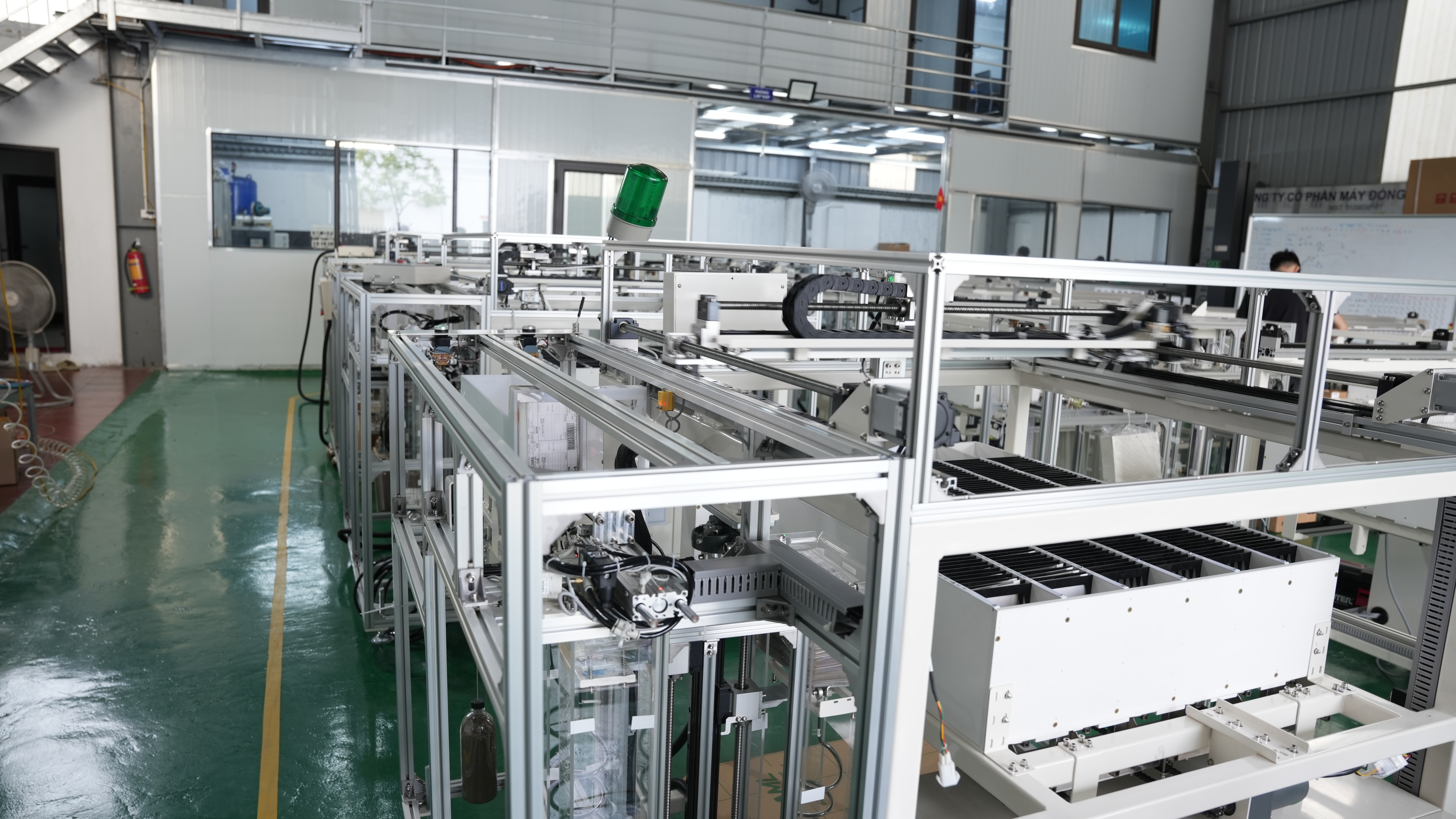 - Cụm cơ cấu hút – xếp (servo/linear motor) thực hiện thao tác chính xác, tốc độ cao.