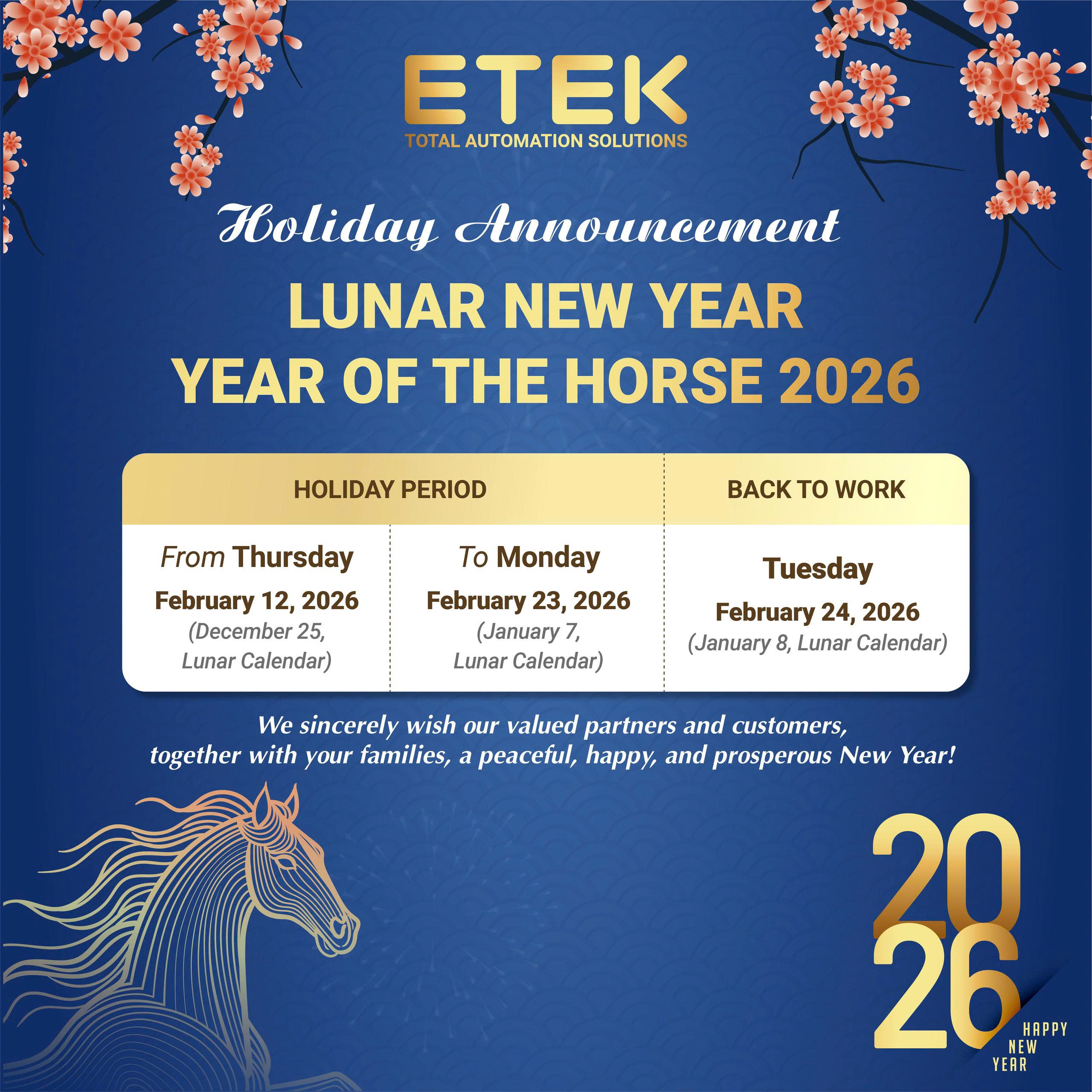 ETEK Automation Solutions Joint Stock Company would like to respectfully inform our Valued Customers, Partners, and All Employees of our Lunar New Year (Binh Ngo 2026) holiday schedule as follows: