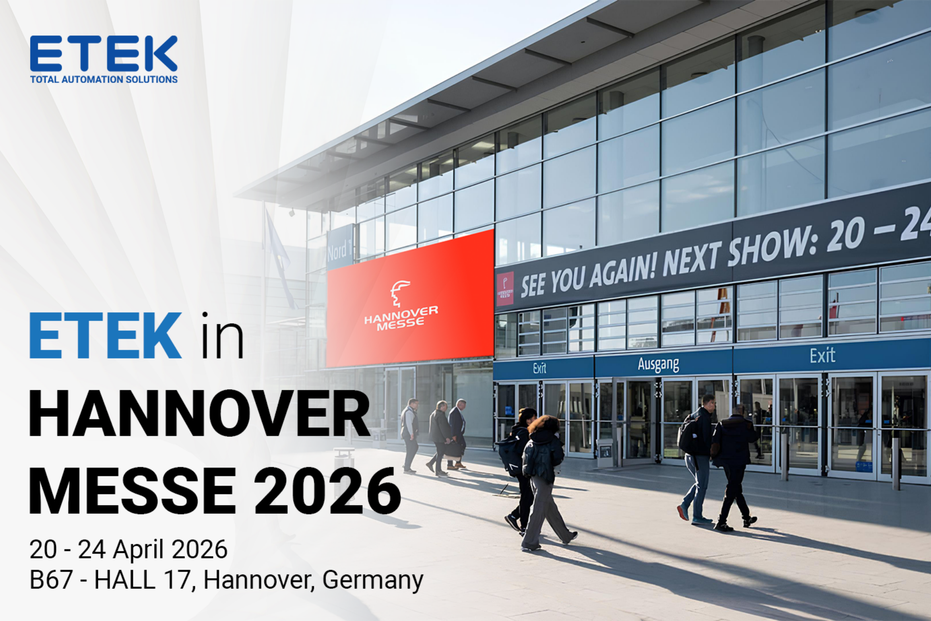 ETEK hiện đang có mặt tại Hannover để tham gia Hannover Messe 2026 – một trong những triển lãm công nghiệp lớn và uy tín nhất thế giới. Sự kiện diễn ra từ ngày 20 đến 24/04/2026, quy tụ hàng nghìn doanh nghiệp hoạt động trong các lĩnh vực sản xuất, năng lượng và công nghệ.